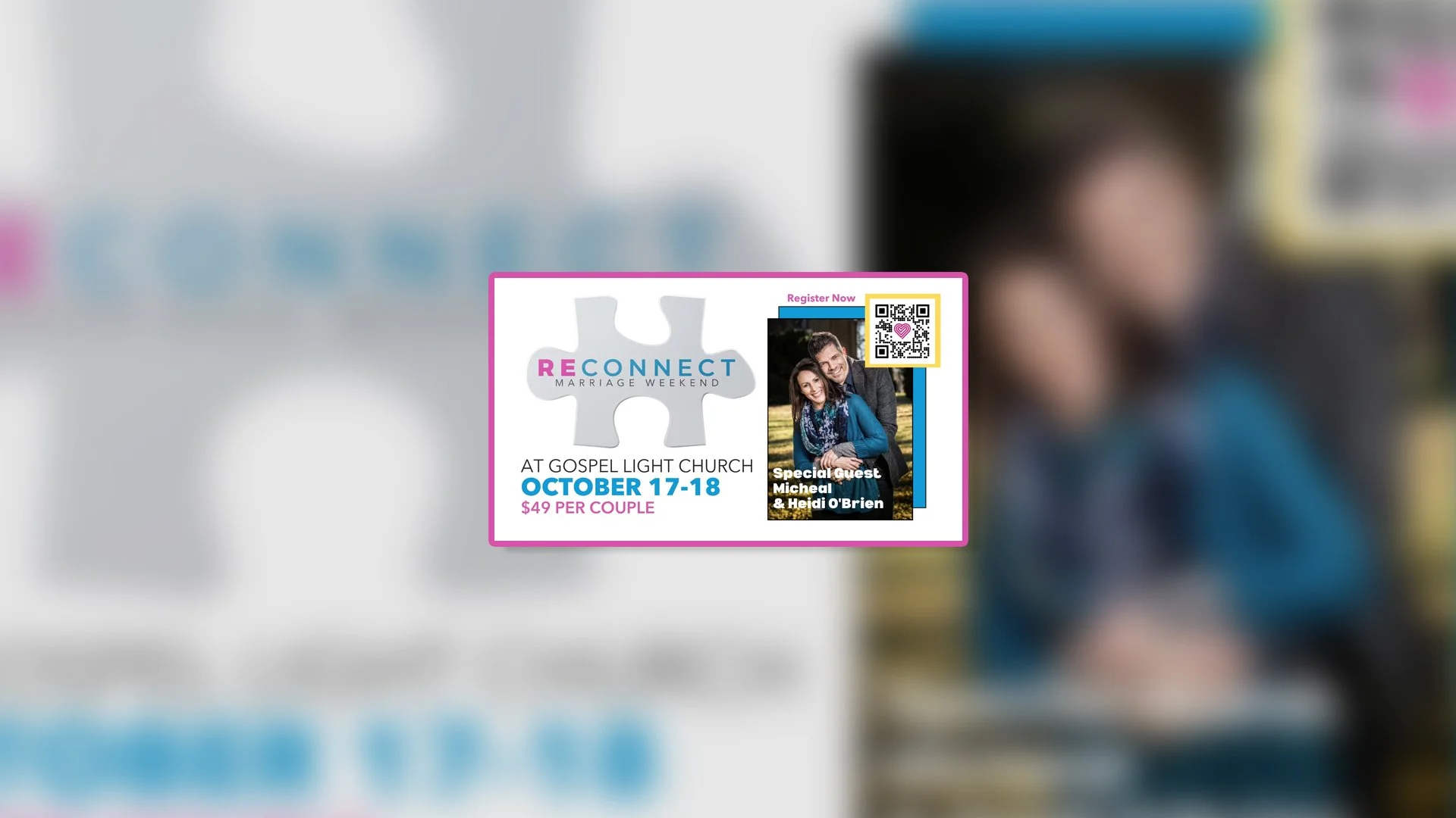 THIS upcoming Friday & Saturday, October 17th-18th will be our “Marriage Reconnect Weekend” here at Gospel Light! This will be a GREAT opportunity to reconnect & reignite your love for your spouse.